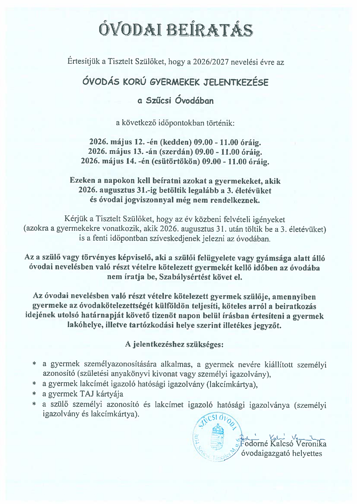 Rózsaszentmártoni Közös Önkormányzati Hivatal Szűcsi kirendeltsége: Kalyóné Törzsök Tünde HVI tag (elérhetősége: szucsipolghiv.igazgatas@gmail.com, 06-37-526-200)